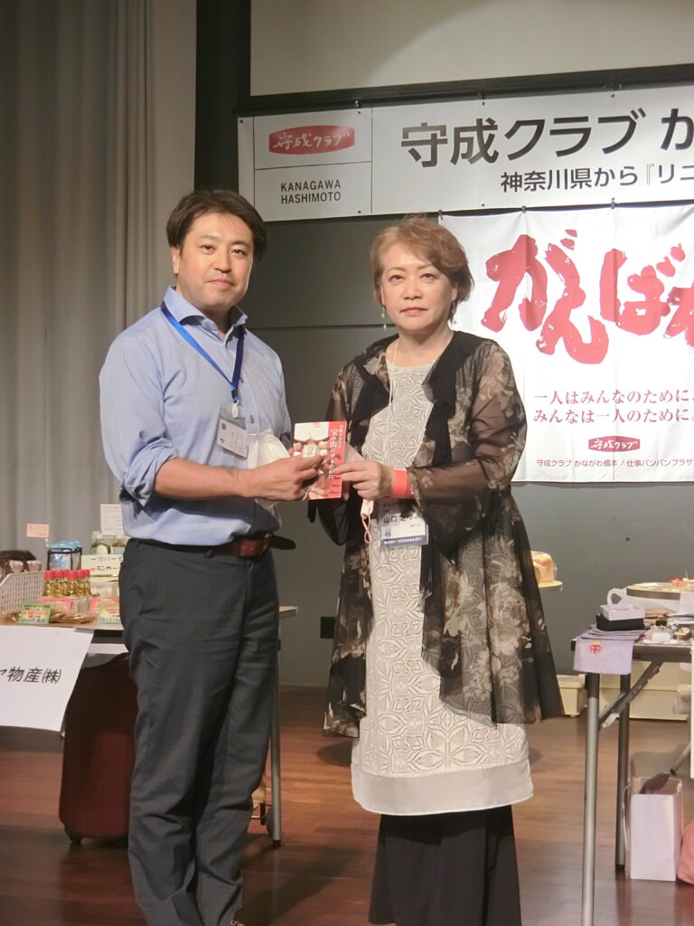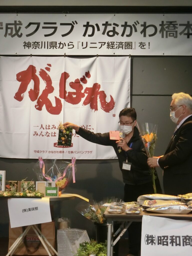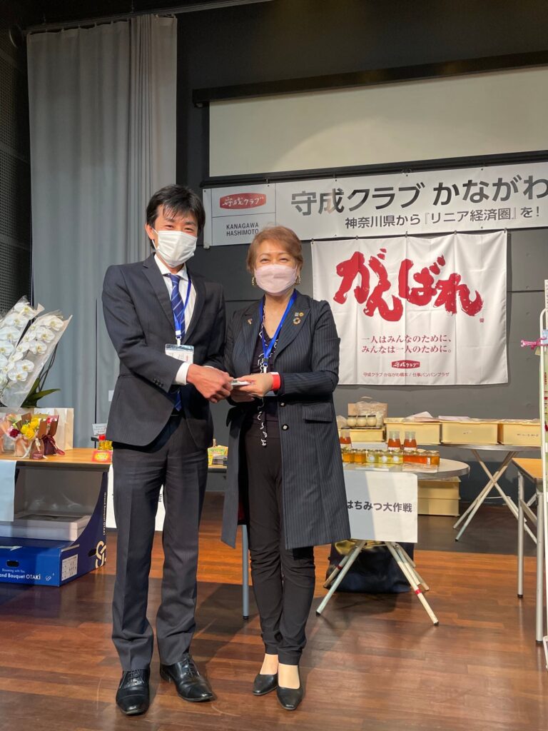 緑バッチは次の4名に「宝の山」と共に授与いたしました。(株)エヌテック常務執行役員神笠孝介会員(相模原市中央区)Mynurse菜っぱ(合)代表社員橋本操会員(相模原市緑区)(有)たけみや代表取締役遠田文江会員(相模原市中央区)(株)ミリオンズ代表取締役小山武夫会員(長野市)