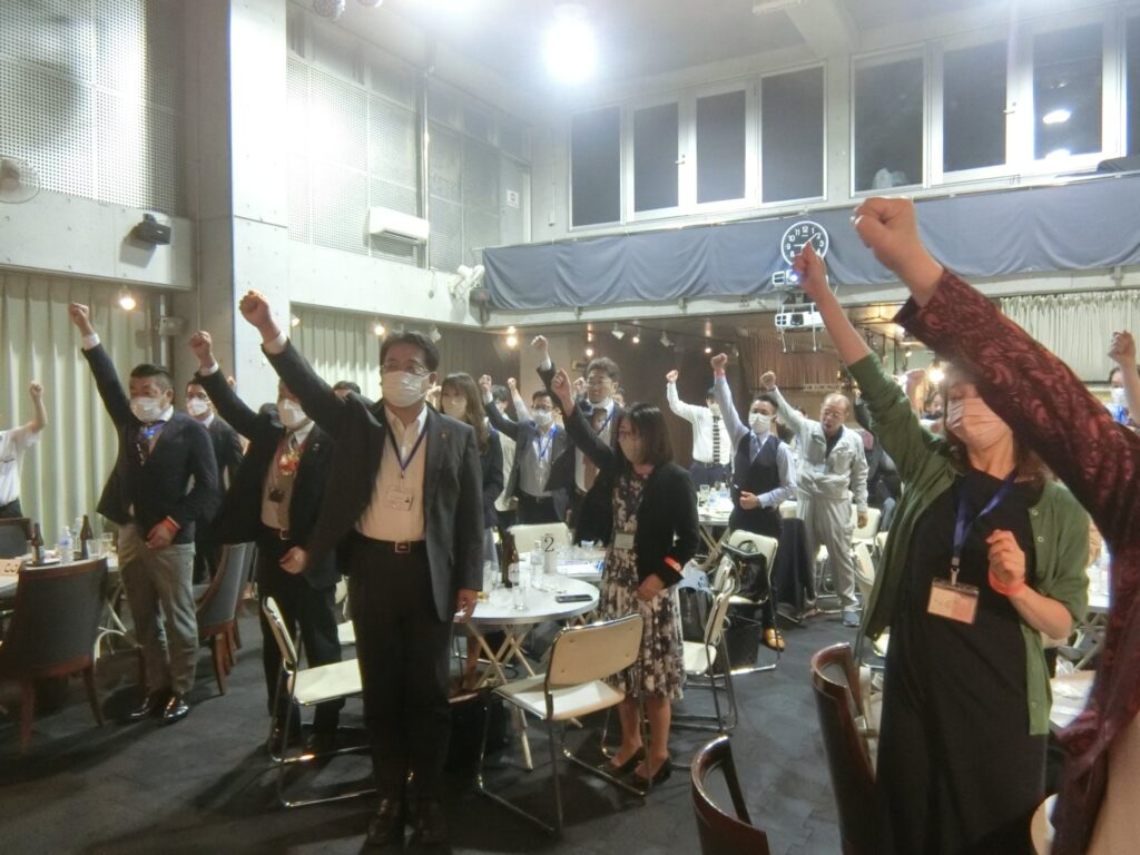 第二部の商談懇親会は、東京八王子会場で会計の大川副代表。会場が変わりイキイキとご挨拶頂きました。そして、〆の出発進行は(有)三幸ハウジング代表取締役久保会員の、「私には座右の銘はないのですが、まさかの事態に対処です」で〆て頂きました。久しぶりの二次会は会員店舗「炭火はじめ」二次会からの参加者が2名ほど(笑)元気なお顔が見れて嬉しかったです。まん延防止明けの4月例会は、自会場参加率44%でしたが、アフターコロナ、ウイズコロナの仕事バンバン例会でぜひ情報と人脈つくりにご参加ください。久しぶりのフルコースでの通常例会は如何だったでしょうか?体調に変化があった参加者は代表の私山口までご連絡くださいね。