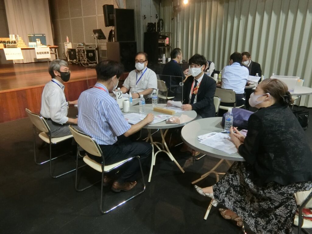 受付時に抗原検査キットを配布しましたが新型コロナワクチン接種の確認を行ったところ、参加者の80%が接種済であり、不接種者(予約取れない、社員接種優先などの理由)は、全員陰性であり、経営者として感染予防に特段の尽力をしている事により、商談会が実施できている事に感謝します。また、今回の参加資格は初の自会場会員のみとさせて頂いた事にご理解を賜りお礼申し上げます。他会場からの参加を頂いてのマッチングも重要な事だと言う認識は更に強くなりました。経済を止めない為に、コロナ感染予防の徹底を引き続き行い商談会開催いたしますので次回開催には参加をお願いします。