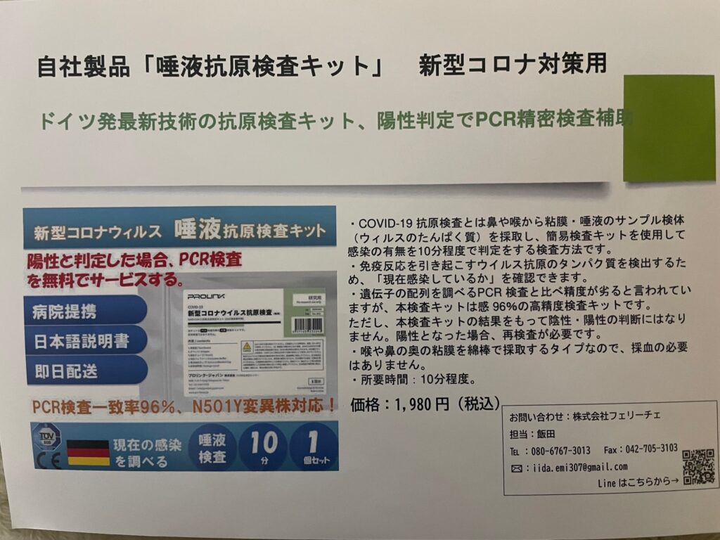 9月例会(9/9)ですが、従来からの感染予防対策に加え参加者全員にワクチン接種の有無の確認と唾液抗原検査の実施という2重3重の対策を実施しての商談会となります。※受付時に検査キットを配布しますので、自席で唾液採取となります。10分後の陰性を確認します(ワクチン接種・中和抗体保持者は陽性反応がでる場合があります)。会場定員は80名ですが、緊急事態宣言下ですので前回同様に参加定員30名とさせて頂いています。現在のゲスト様エントリーは、弁護士法人代表、大手産廃処理業部長と不動産会社代表取締役の3名となっています。今週末の4日(土)が申込締め切りですが、定員まで数名となっており、ブース出展もあと2社大丈夫ですので出欠席のご連絡をお願いいたします。※抗原検査実施のため、受付は17:15~となっています。かながわ橋本HPから、出欠席・商談実績金額の入力をお願いします。↓https://development.shusei-hashimoto.com/