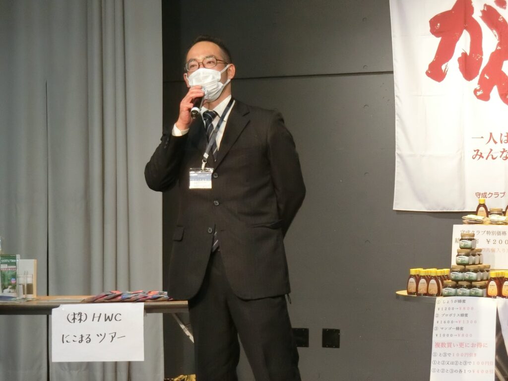 ブース出展は、(合)atele repos、エムスヘアーショップ、デルマヤ物産(株)、(株)からだおもい屋、(株)HMCにこまるツアーでした。どの商品も社長の思いが深いものです。久々の第2部商談懇親会はギリ20時前に横浜会場世話人の船原会員にビールで乾杯のご発声を頂きました!やはり景気がつきますね!横浜会場の世話人さんのキャラ全開で楽しく盛り上げて頂きましたので和やかな商談が続きました。ありがとうございます。そして、〆のない商談会は、(有)ヤギ・リカーズ専務取締役の八木健芳会員の出発進行で。酒類仲卸業として厳しい経営が続き度々TV映像でコメントを求められてました。緊急事態宣言が解除され例会にも参加が可能となり、恒例の座右の銘は「毎日が奇跡の連続」正に会員経営者の思いで〆て頂きました。